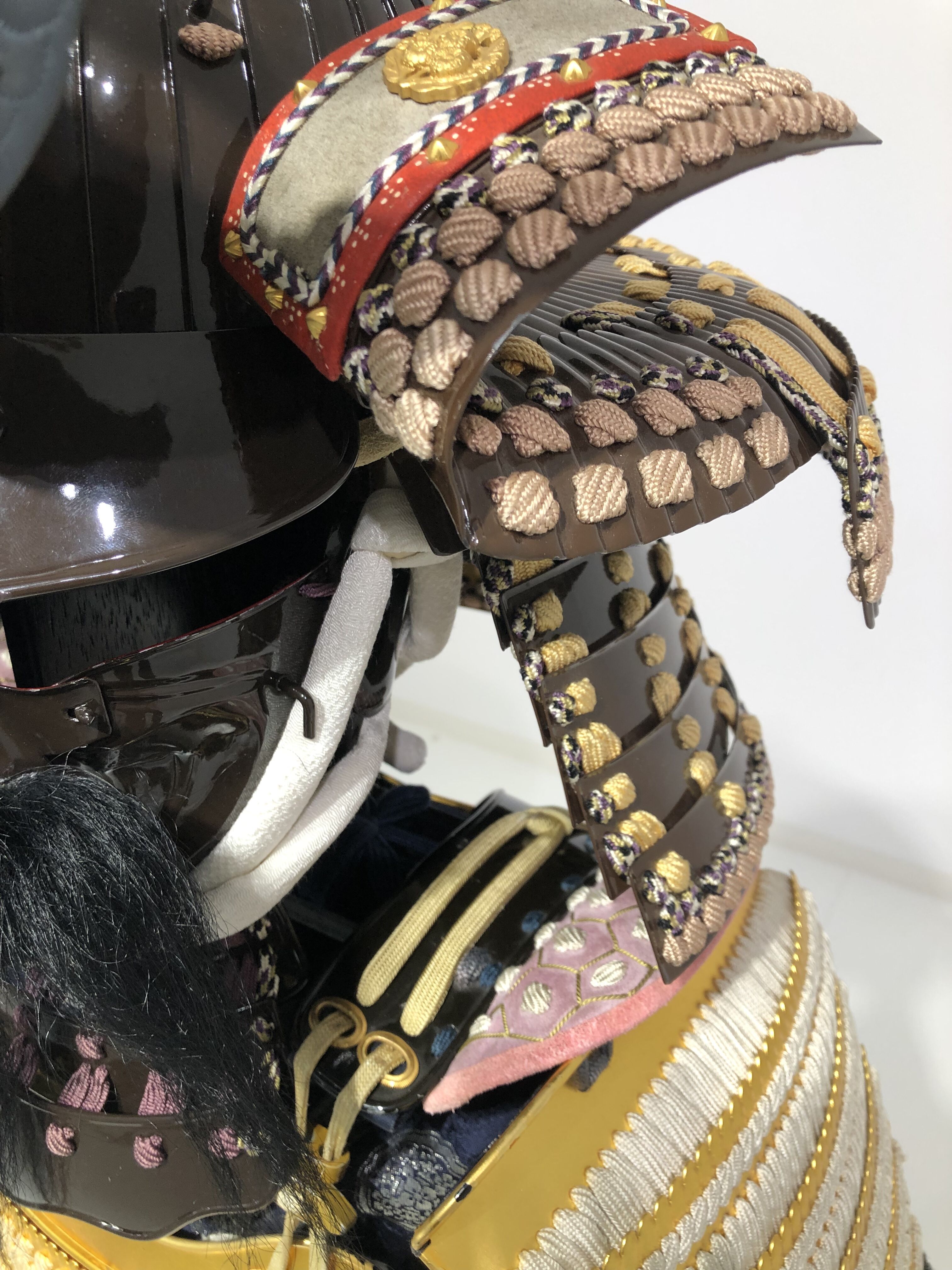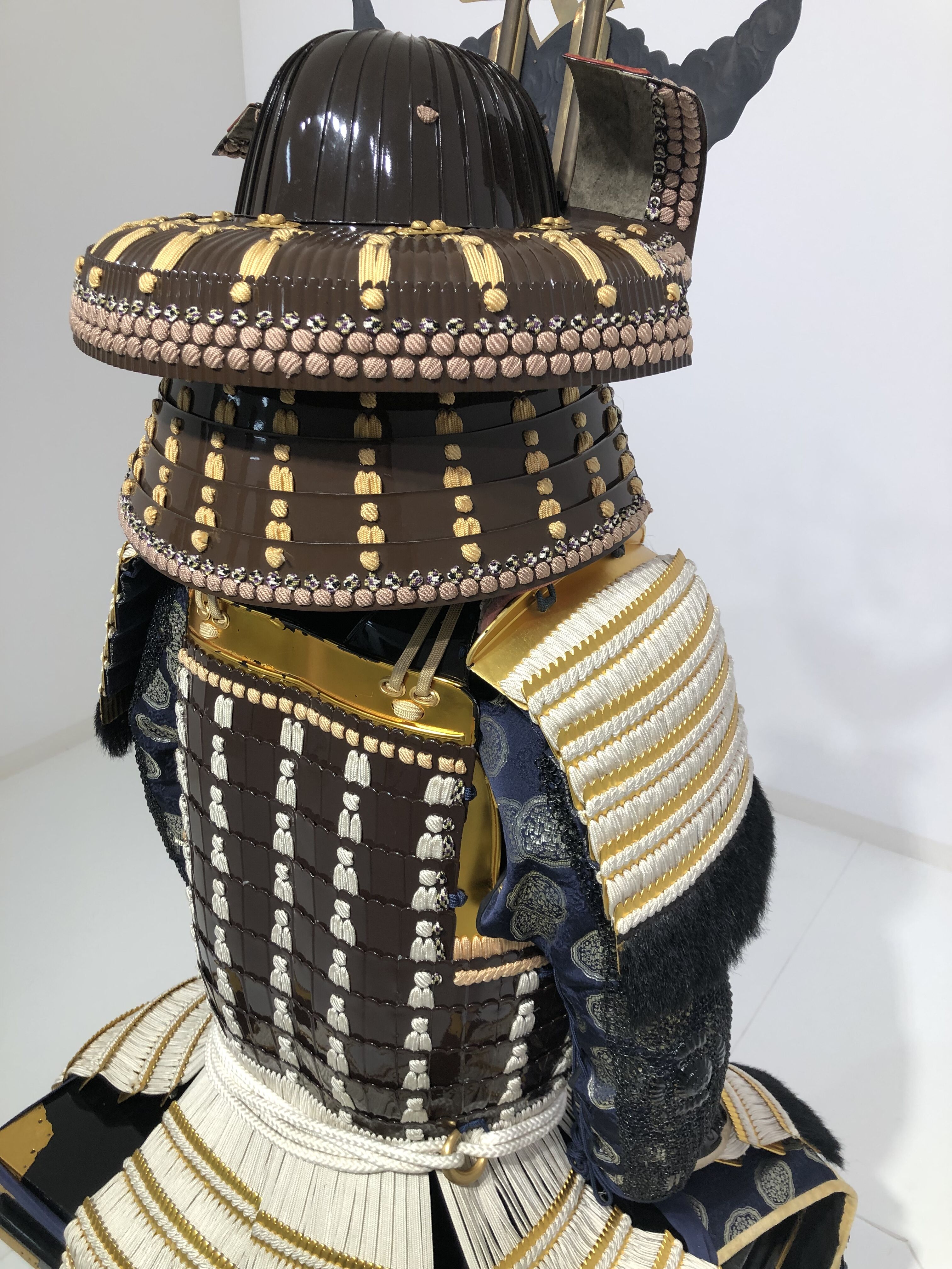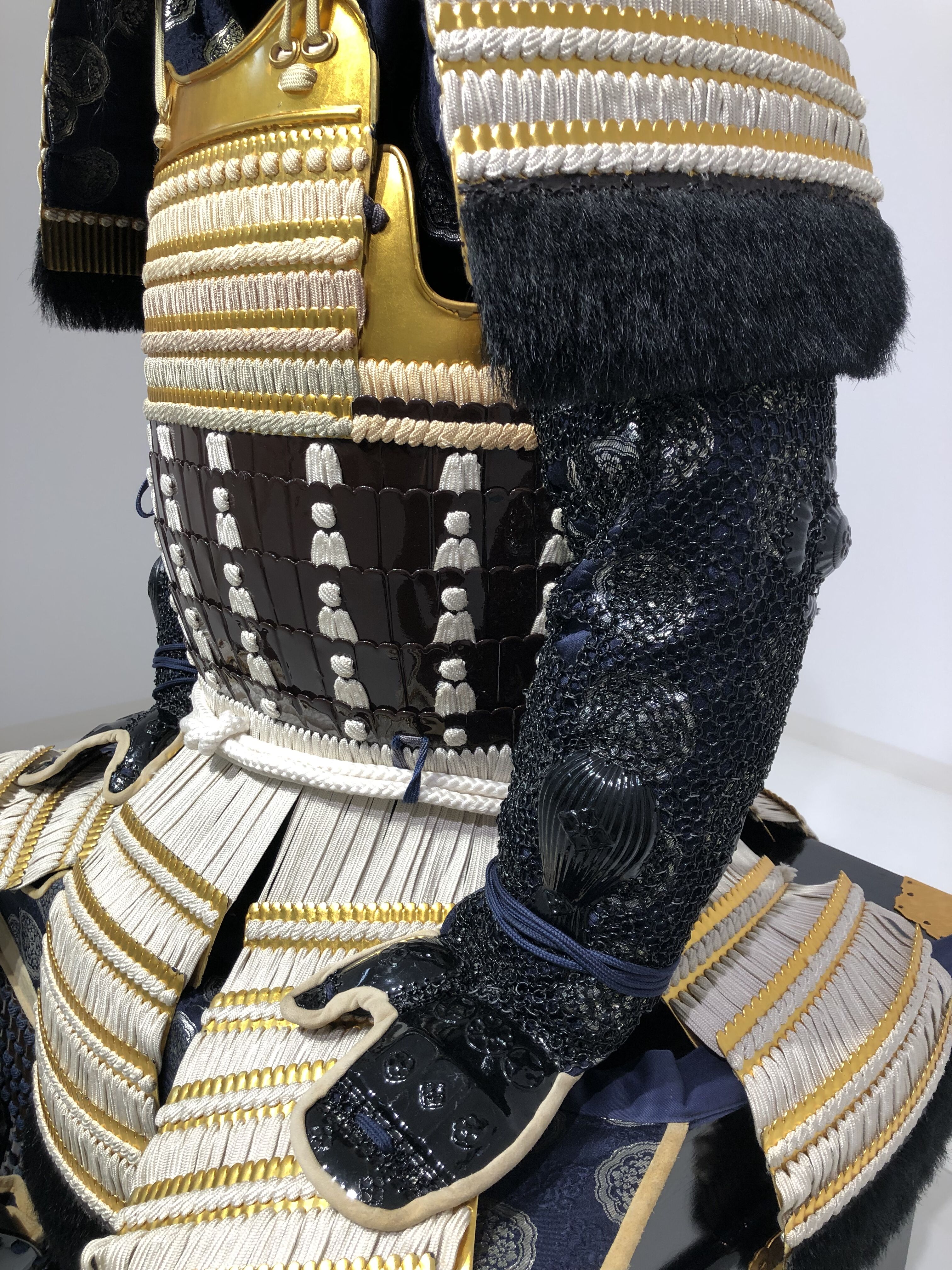 袖 本金箔押当世小札白糸威五段丸袖(下段ヤク毛)