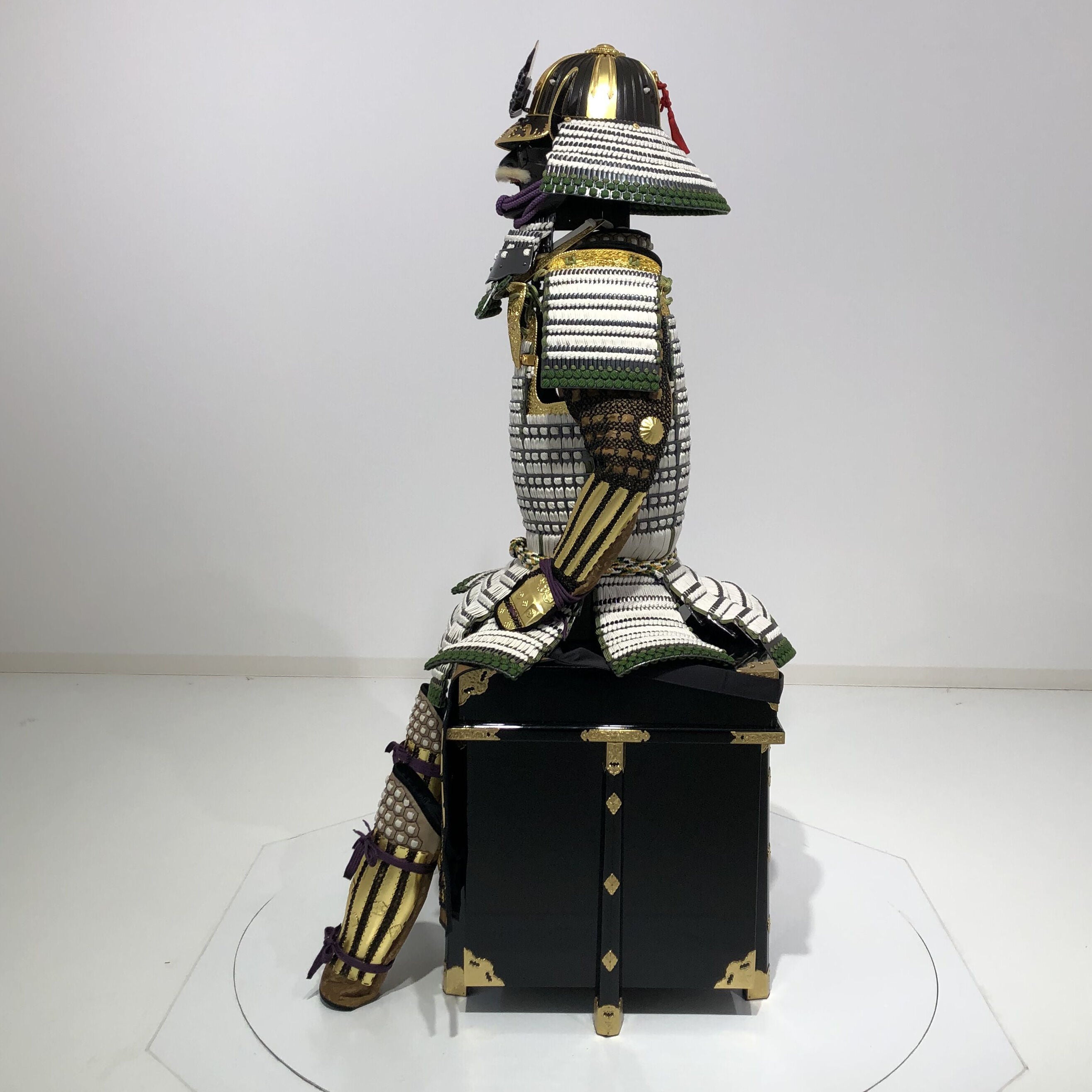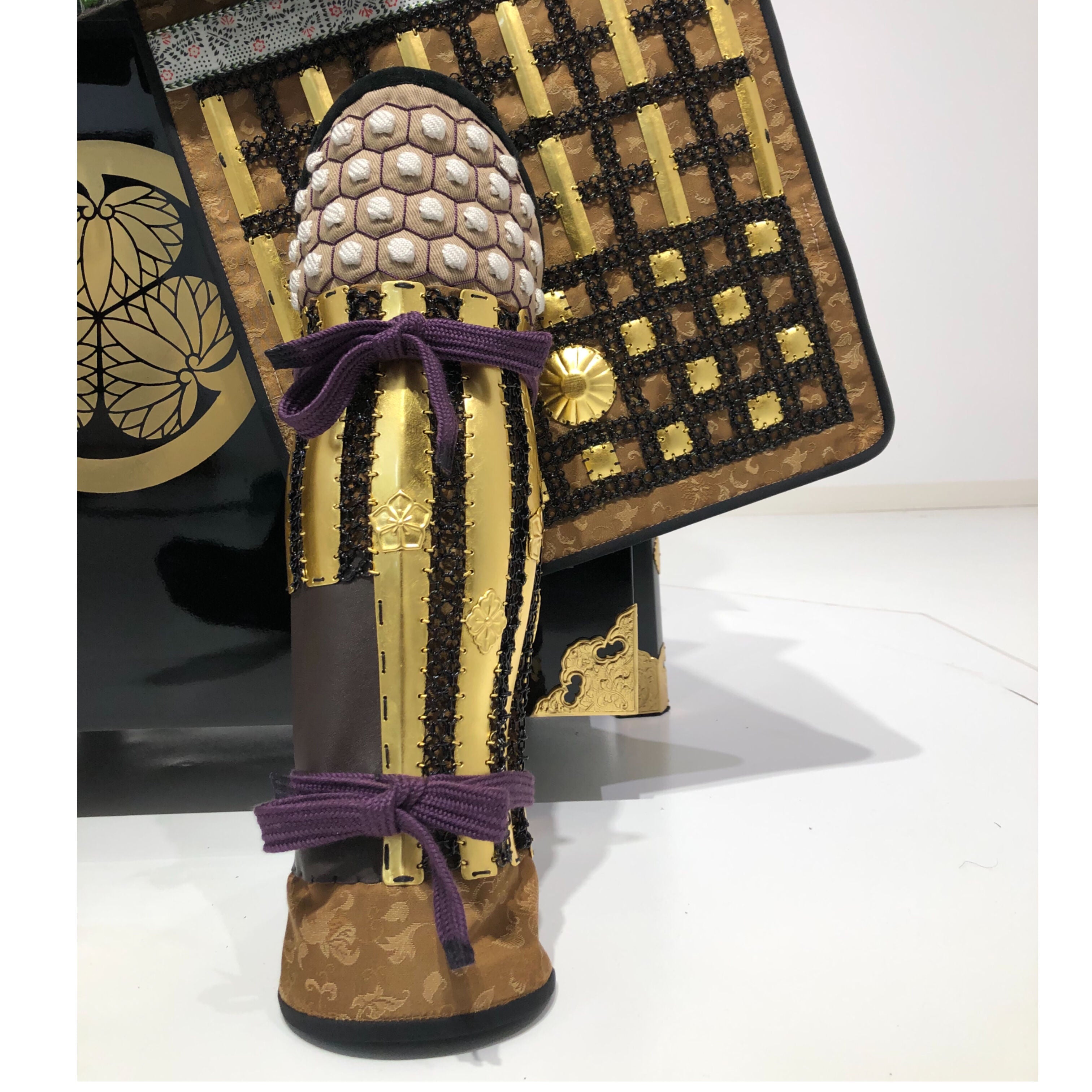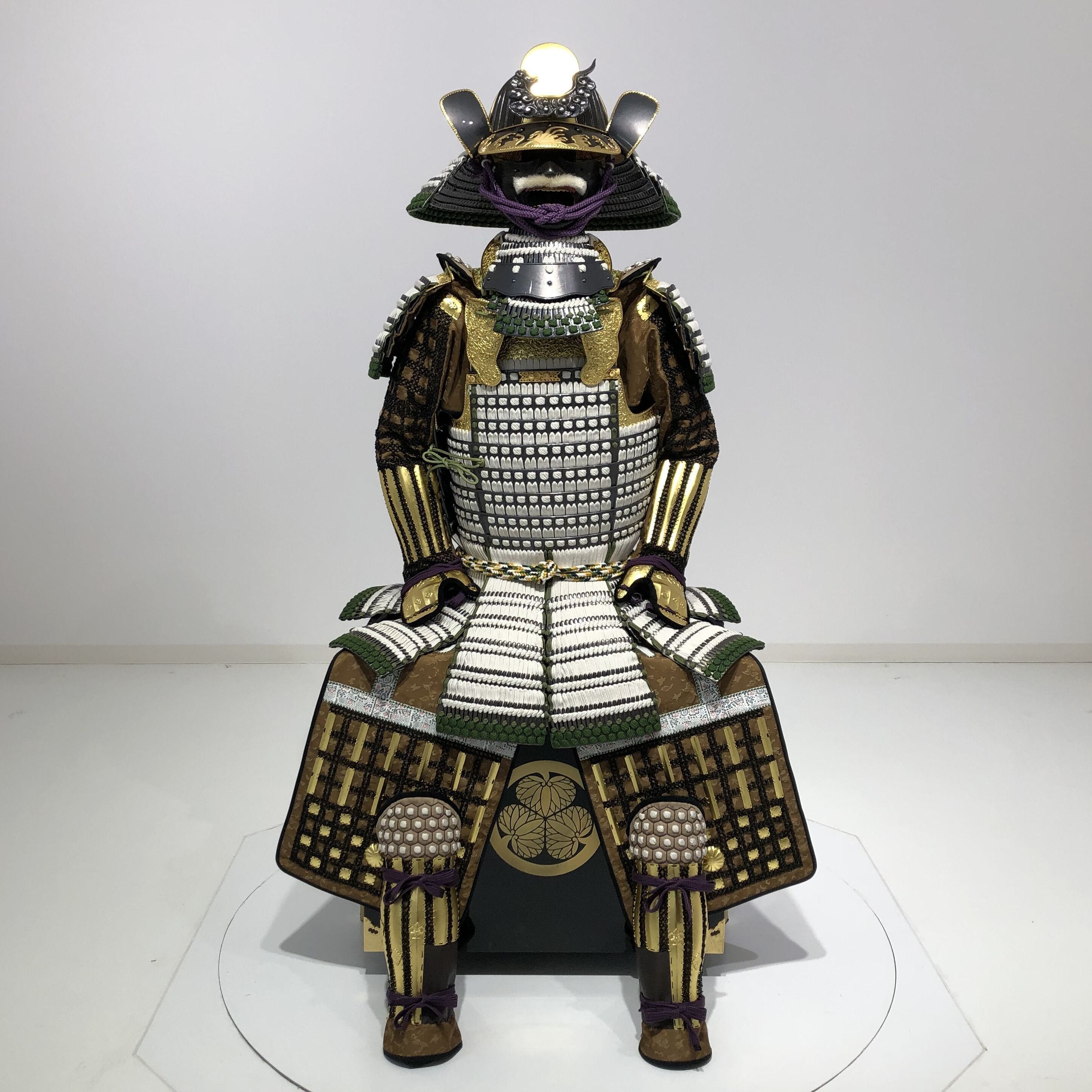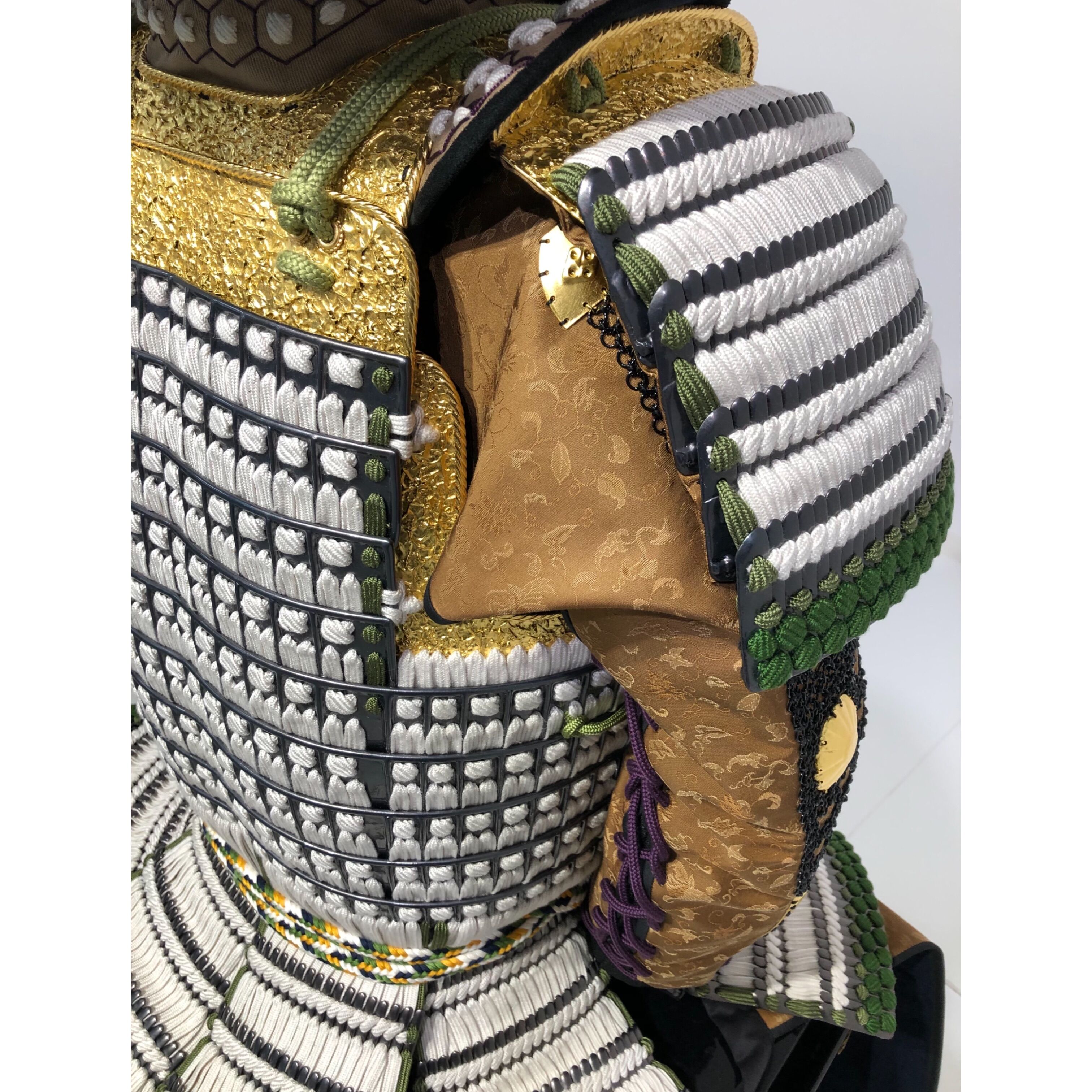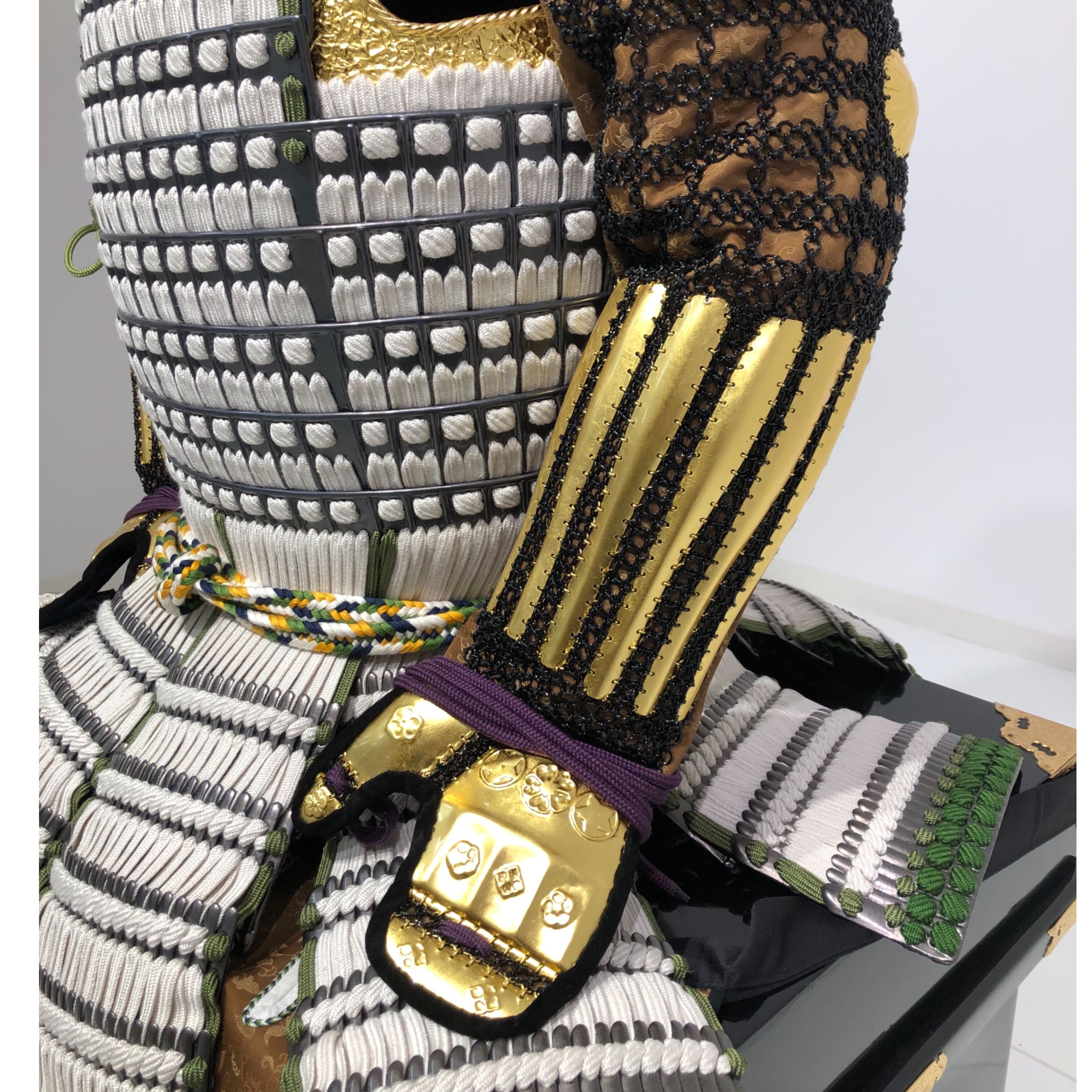 袖 燻銀箔押本小札白糸毛引威五段丸袖(冠板金箔)