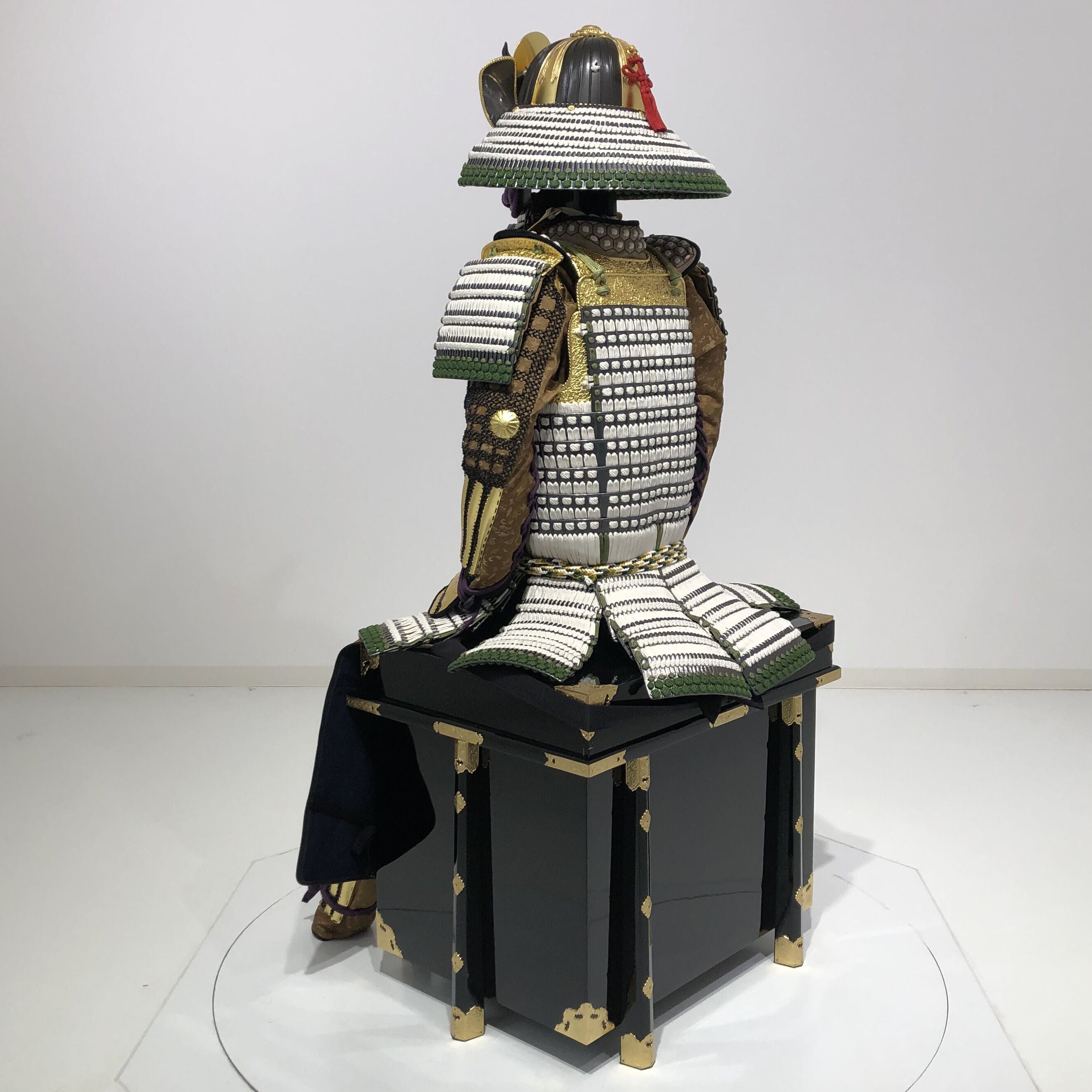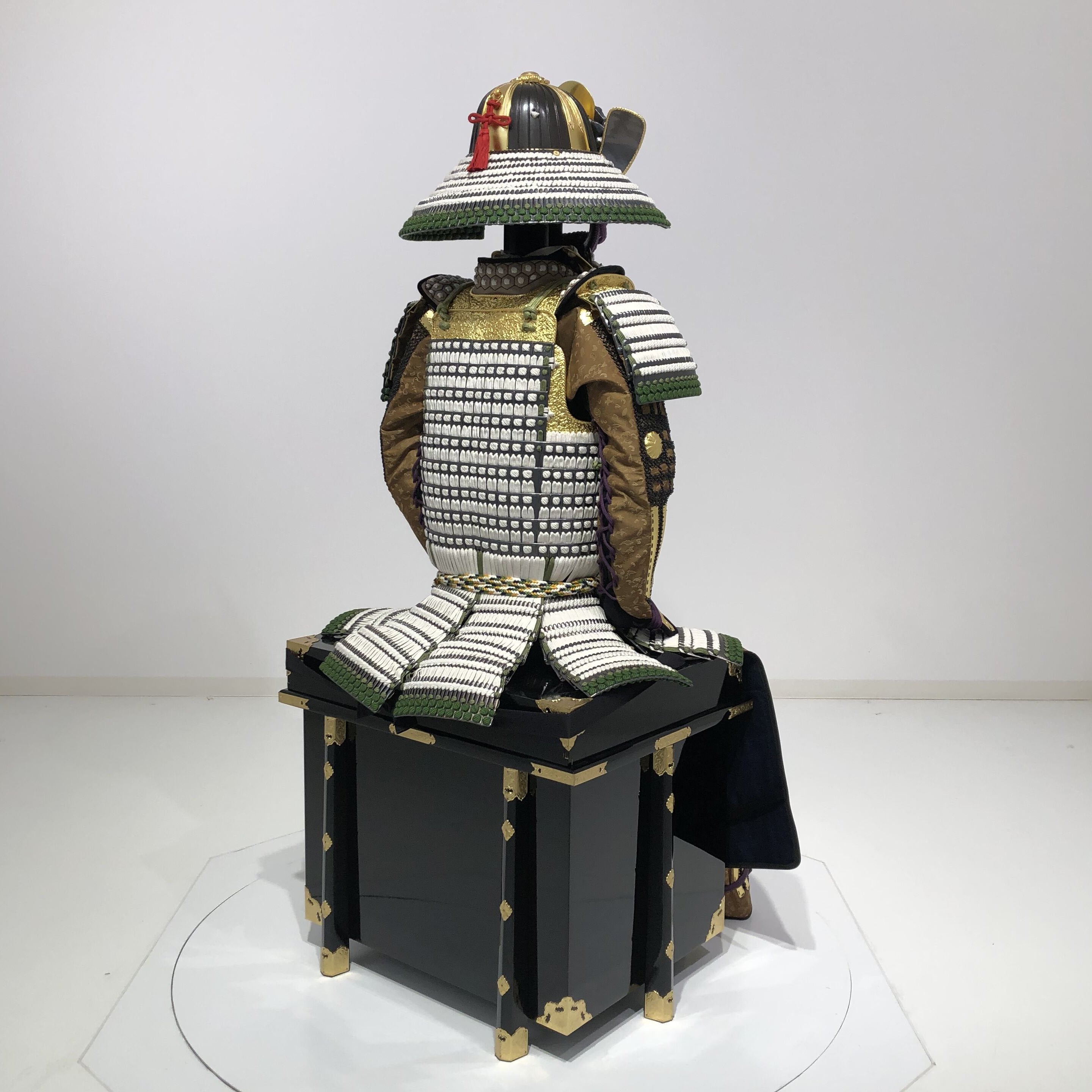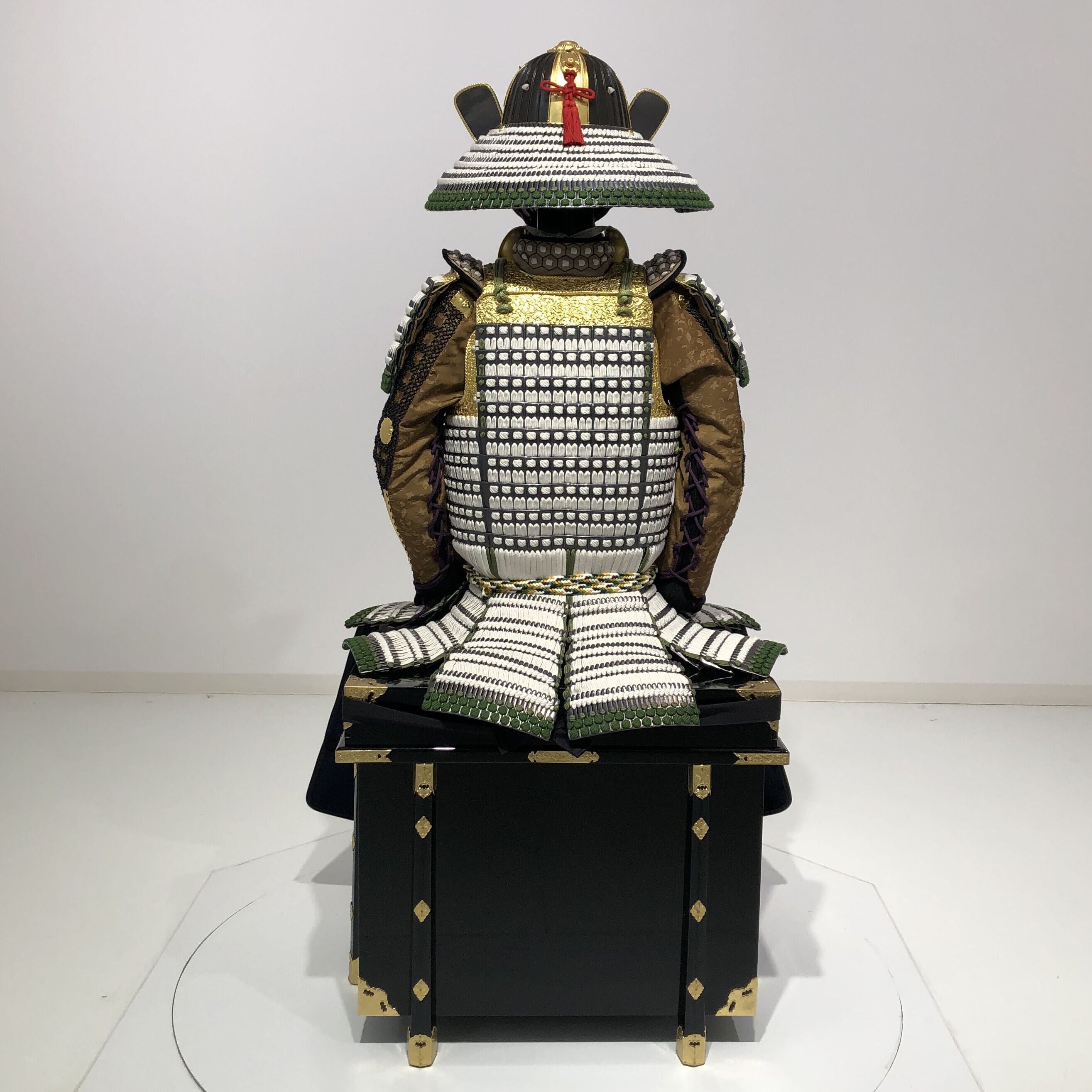 喉輪 燻銀箔押本小札白糸毛引威(馬蹄金箔叩塗)