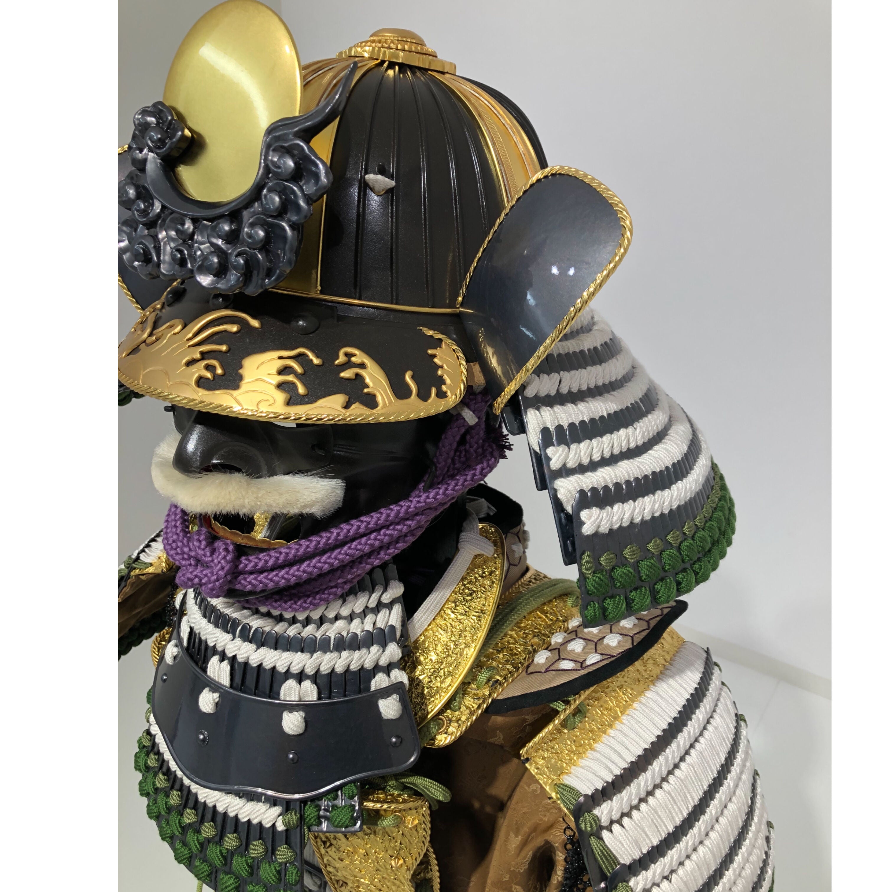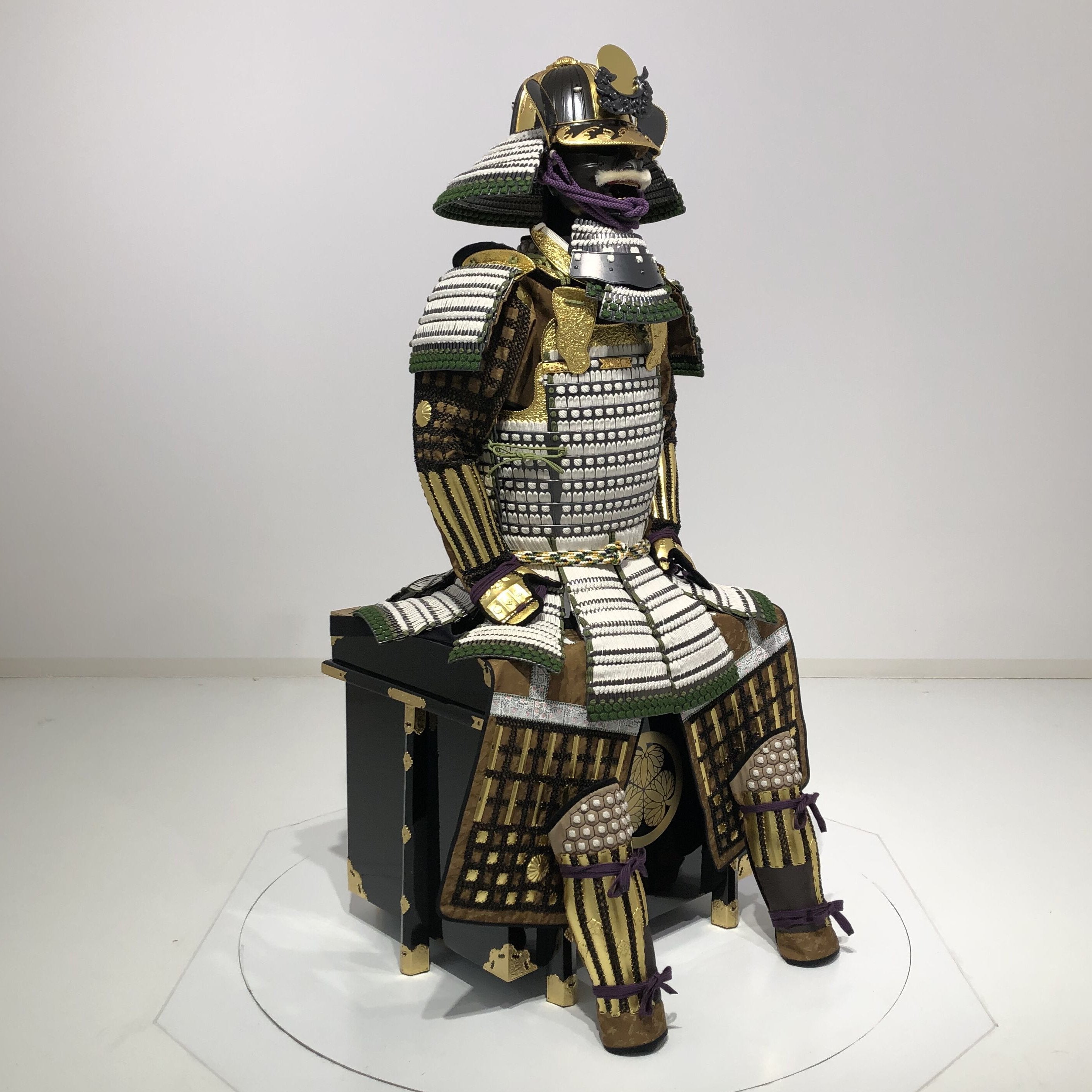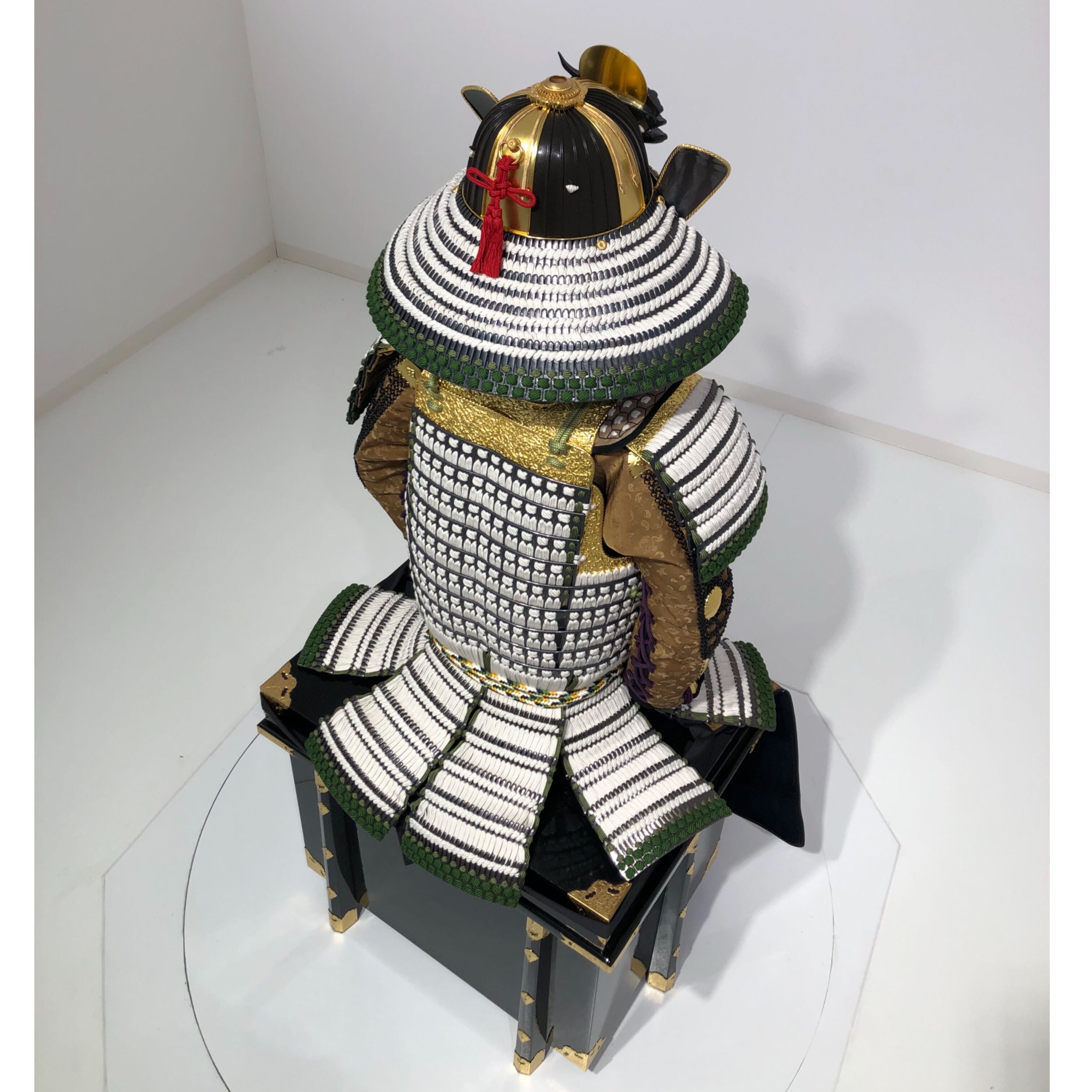 喉輪 燻銀箔押本小札白糸毛引威(馬蹄金箔叩塗)